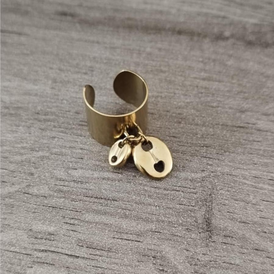 Bague pendentif grain de café dorée, garantie sans nickel ni plomb.