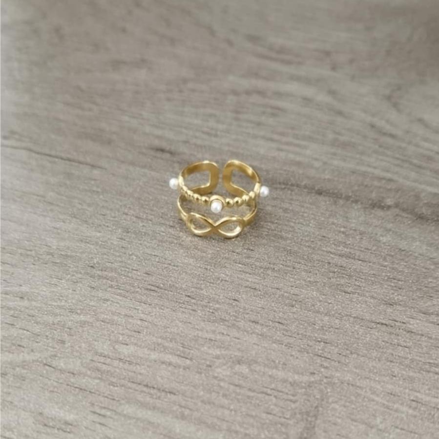 Bague infini et perles nacrées, garantie sans nickel ni plomb.