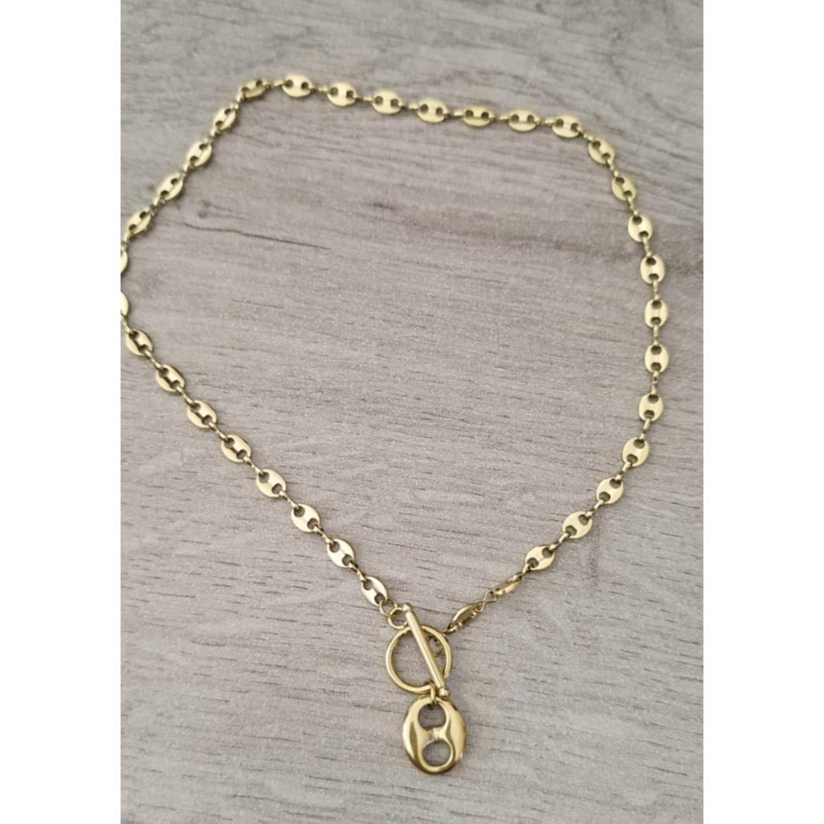 Collier dorée grain de café, fabrication française garantie sans nickel ni plomb.