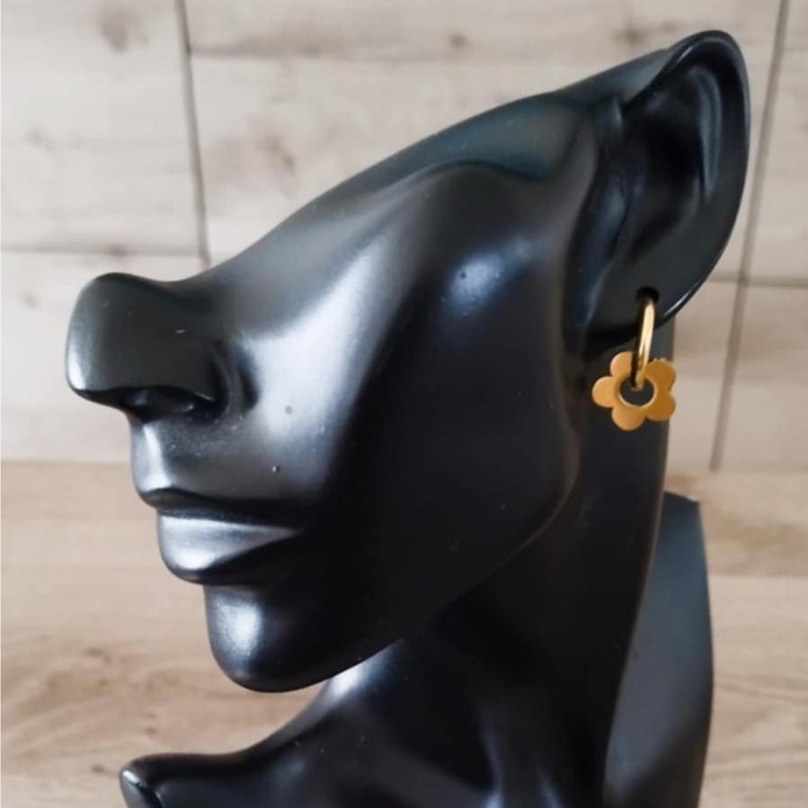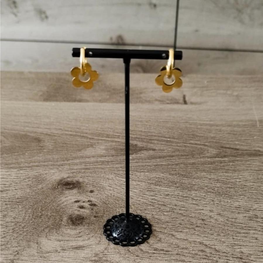 La créole de12.5 cms est en acier inoxydables, les fleurs sont aussi en acier inoxydable.