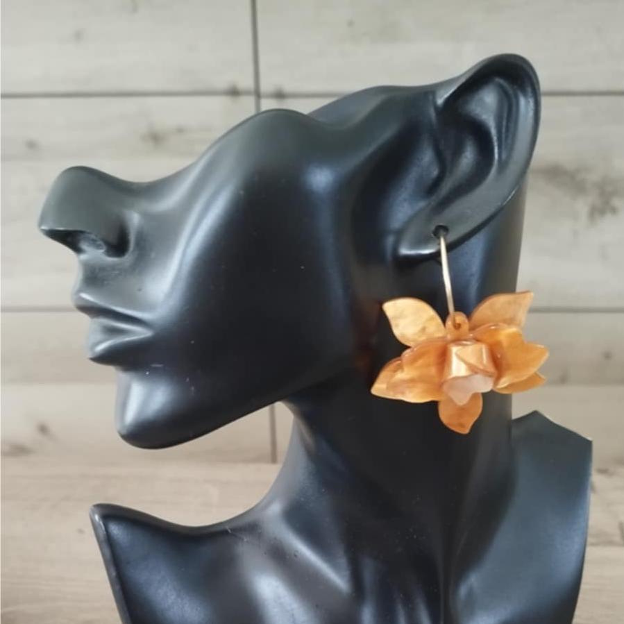 La créole de 2.5 cms est en acier inoxydables, les fleurs sont en acrylique.