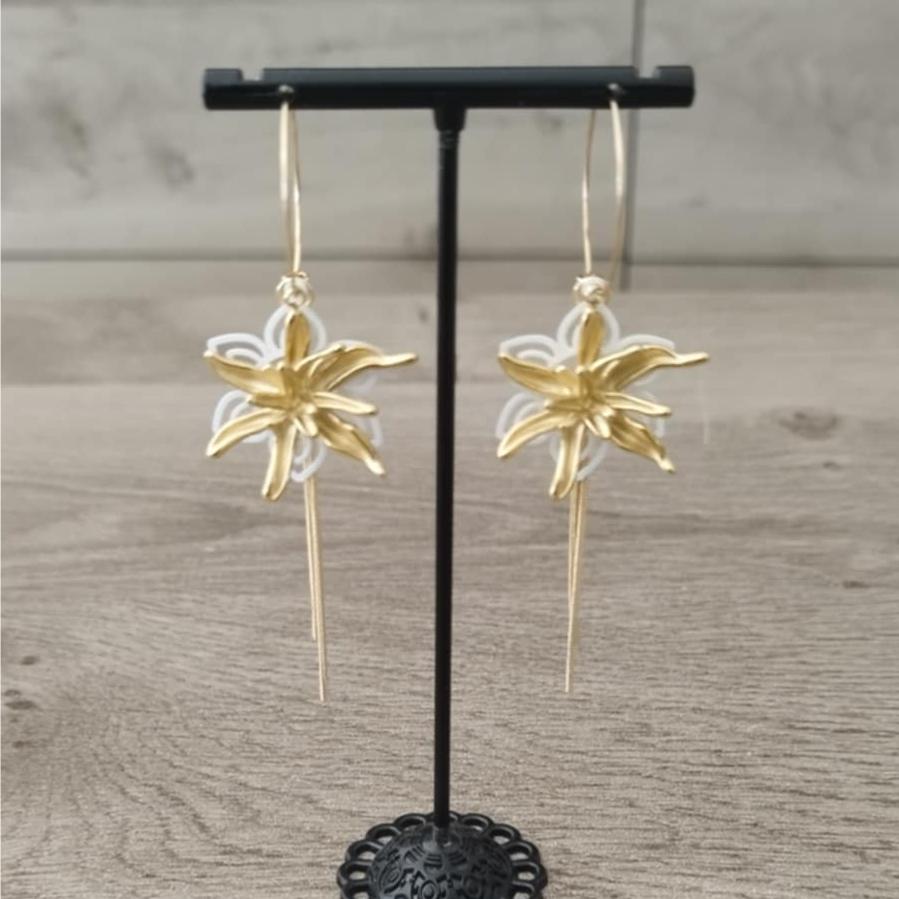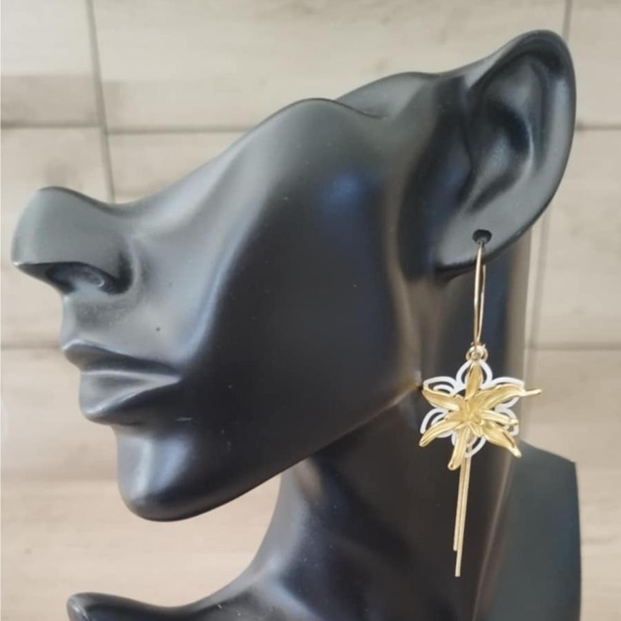 La créole de 2.5 cms est en acier inoxydables, les fleurs sont en laiton peints.