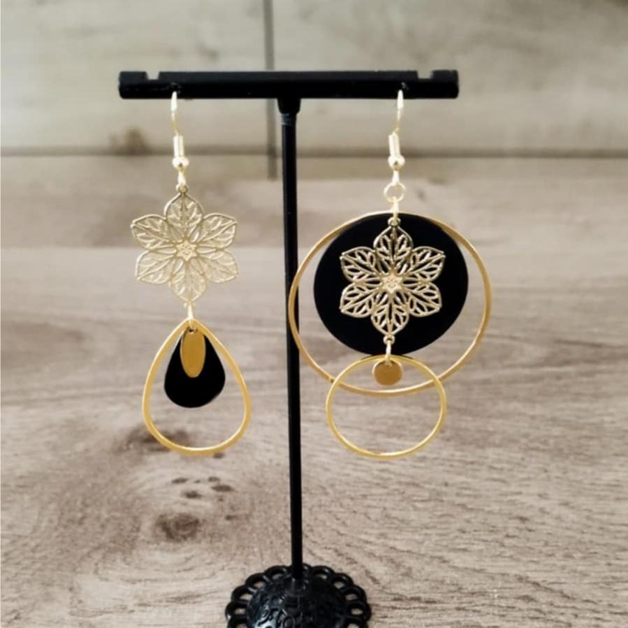 Boucles d’oreilles dépareillées dorées, fabrication française garantie sans nickel ni plomb.