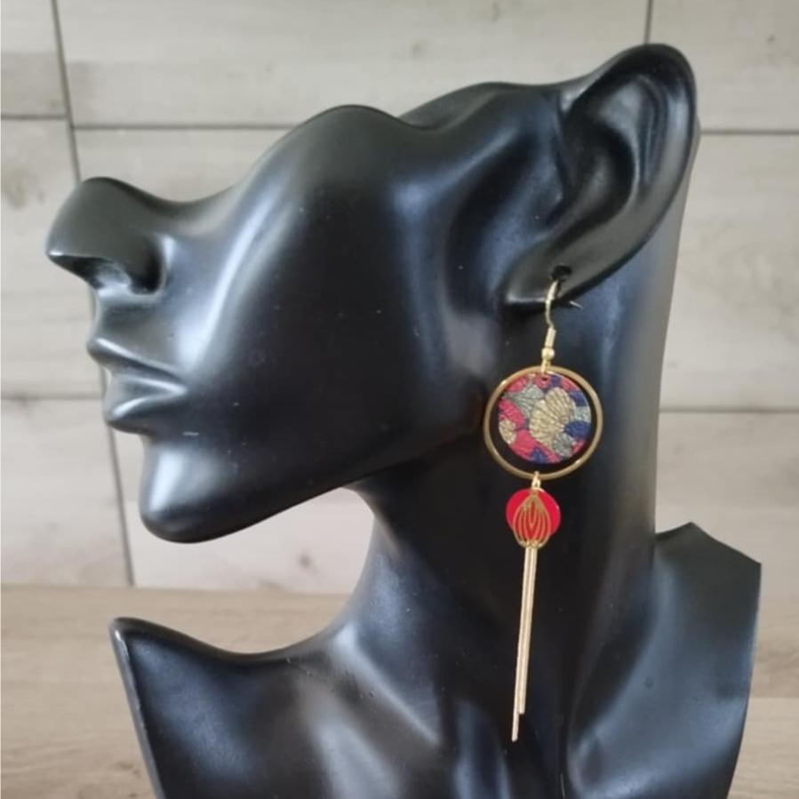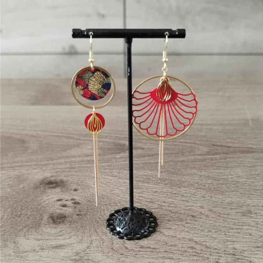 Boucles d’oreilles dépareillées pendantes dorée, fabrication française garantie sans nickel ni plomb.