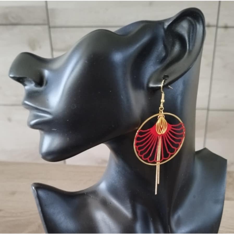 L’ensemble de la paire de boucle d'oreilles est en acier inoxydable, les breloques de couleurs sont en émail et en laiton peint.