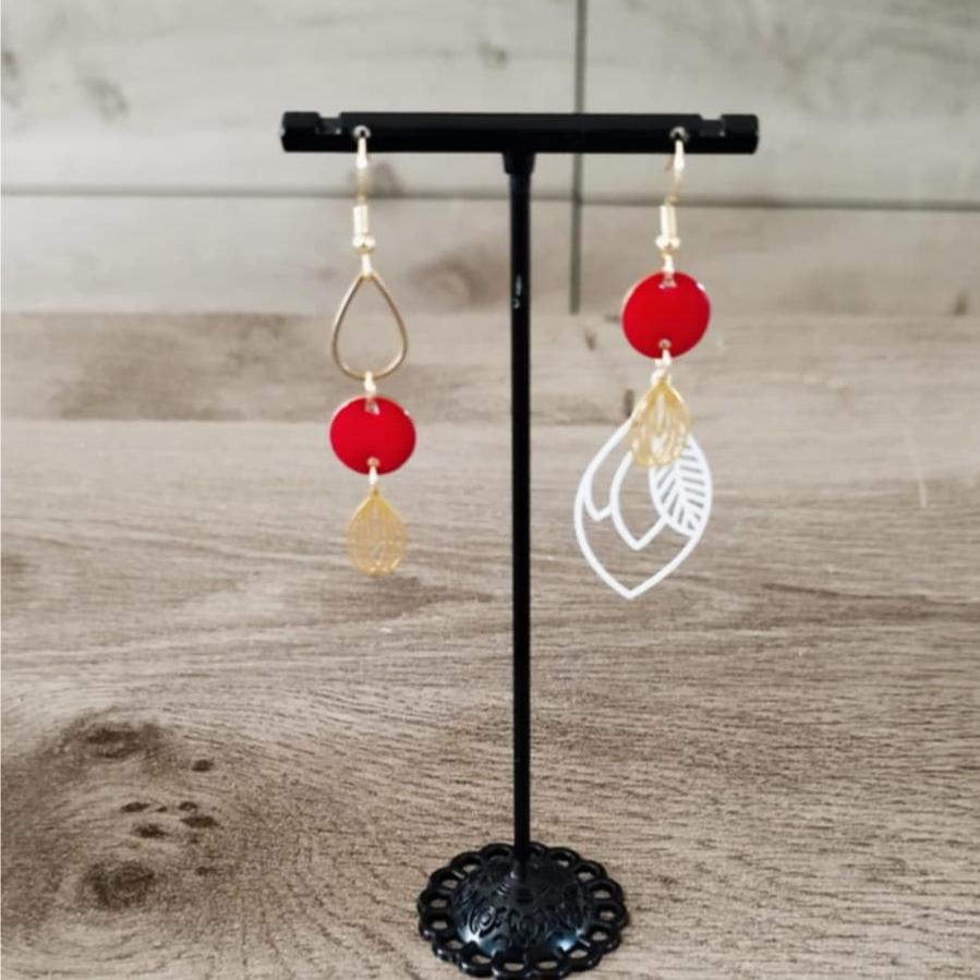 Boucles d’oreilles dépareillées dorées, fabrication française garantie sans nickel ni plomb.