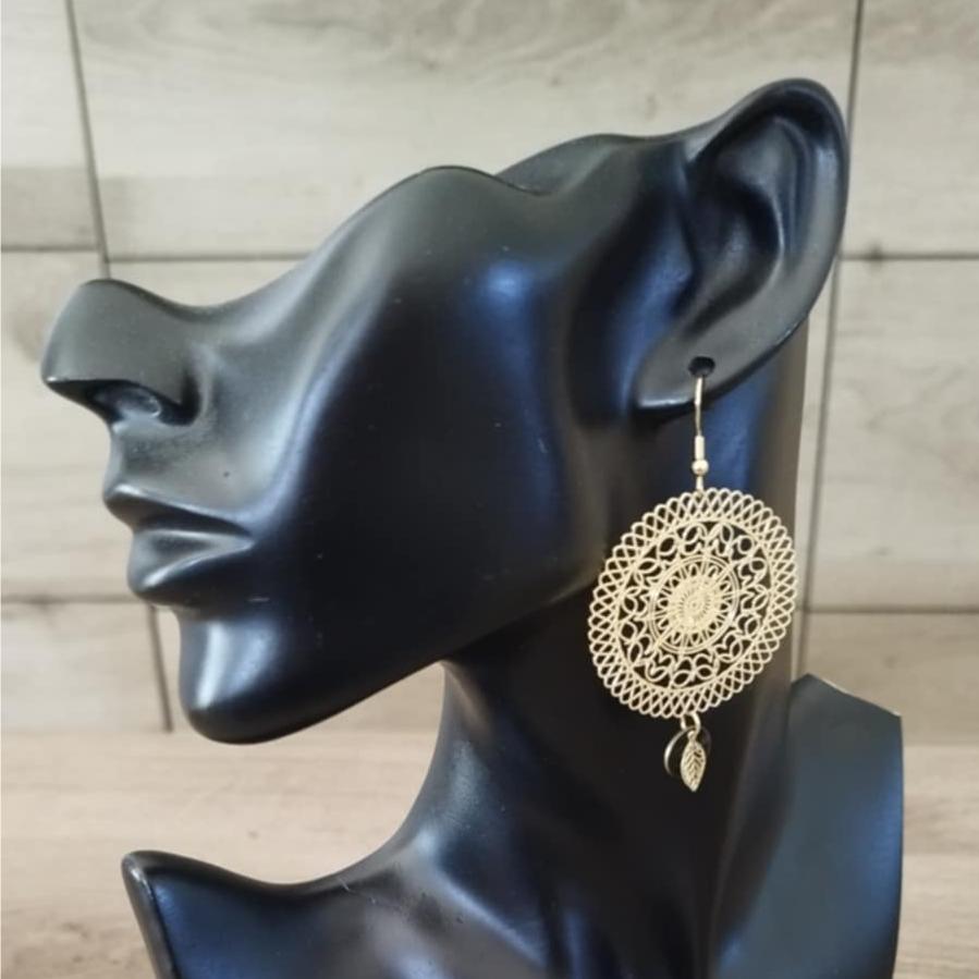 Boucles d’oreilles pendantes dorée, fabrication française garantie sans nickel ni plomb.